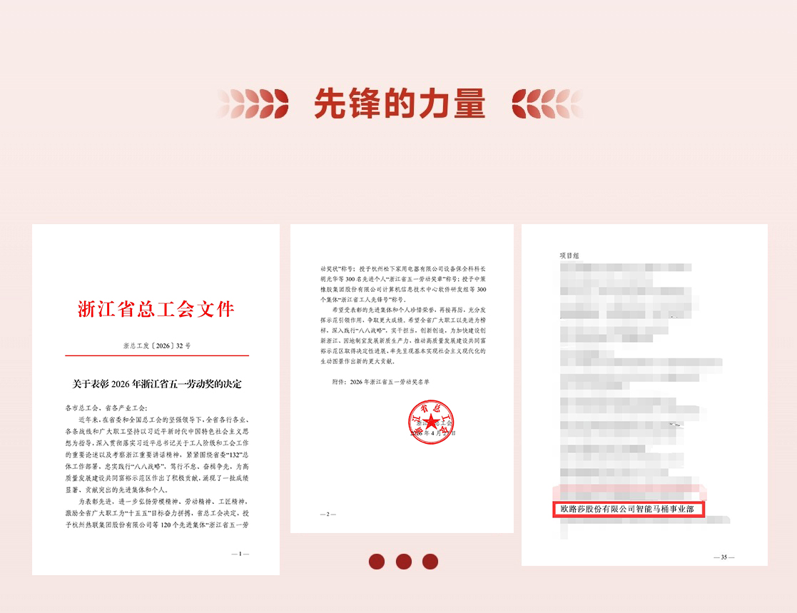 五一勞動節(jié)來臨之際,2026年浙江省五一勞動獎及工人先鋒號名單正式揭曉。歐路莎股份有限公司智能馬桶事業(yè)部憑借卓越的團隊表現(xiàn)與突出的行業(yè)貢獻,被授予 浙江省工人先鋒號榮譽稱號。這份殊榮,既是對一線工匠精神的高度肯定,更是對歐路莎深耕智能衛(wèi)浴、引領(lǐng)產(chǎn)業(yè)升級的有力背書。